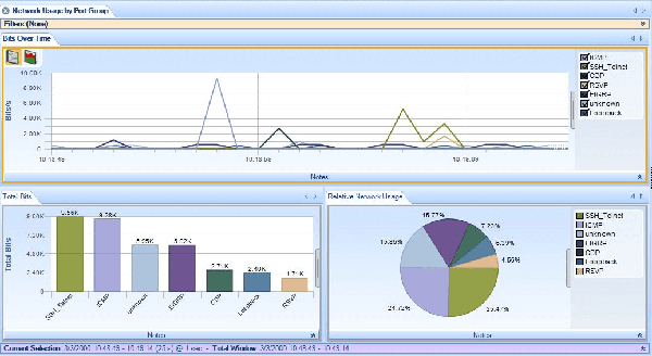 - Standard three-pane packet browser